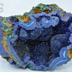 L'azurite est un minéral de carbonate de cuivre qui se forme sous forme de masses, de stalactites, de formations botryoïdales et de cristaux prismatiques courts. L'azurite cristallisée est extrêmement rare, mais d'une beauté remarquable. Ce minéral peut se présenter dans presque toutes les nuances de bleu, allant de l’azur à l’indigo, en passant par l’outremer.